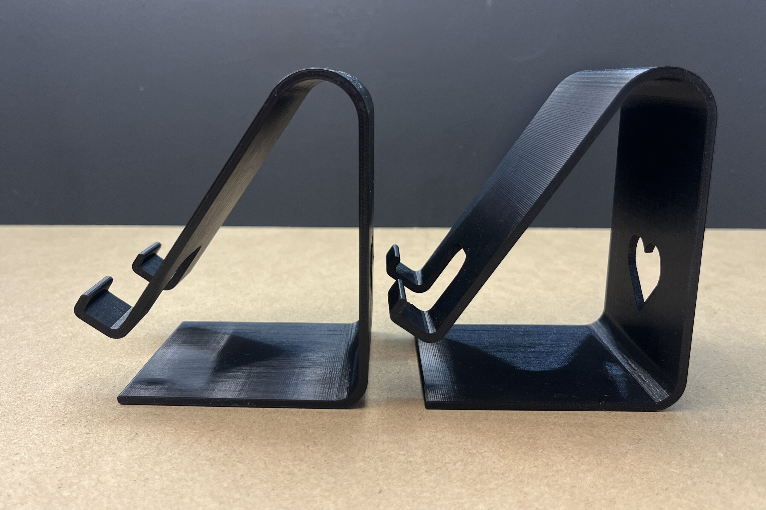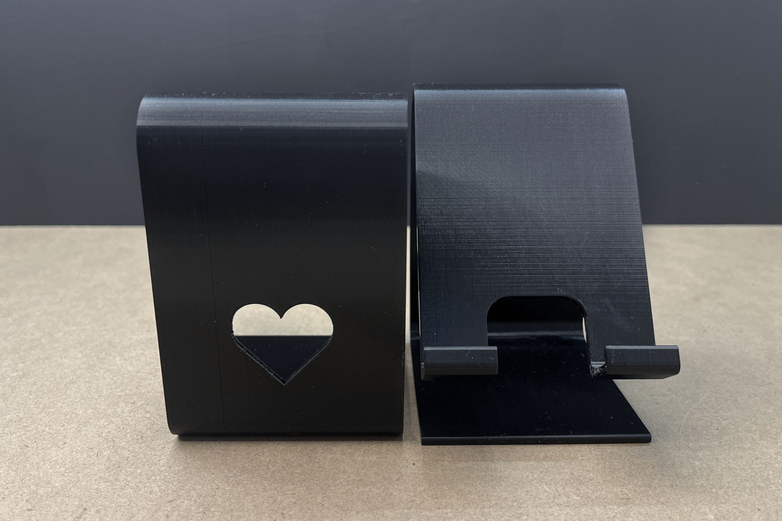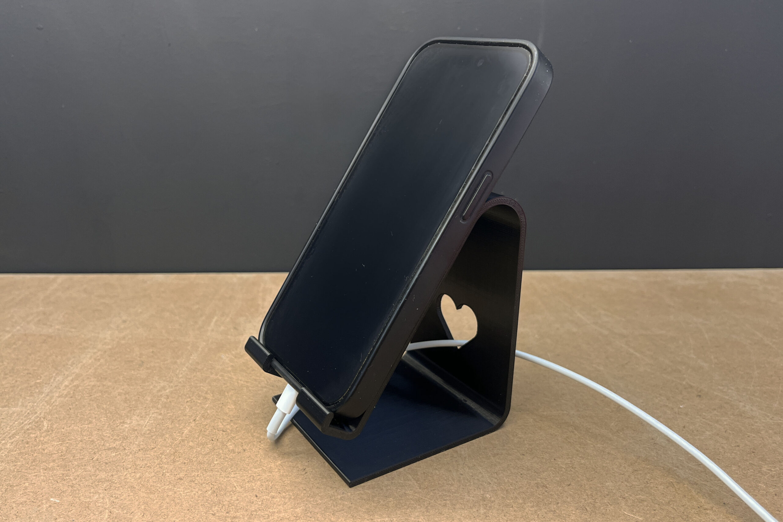 Każdy egzemplarz powstaje na drukarce 3D z ekologicznego PLA – materiału lekkiego, a jednocześnie trwałego i przyjaznego środowisku. Konstrukcja stojaka została zaprojektowana tak, by ekran telefonu był dobrze widoczny zarówno podczas rozmów wideo, jak i w trakcie zwykłego przeglądania treści. Na tylnej ściance znajduje się niewielkie serduszko – ozdobny detal, który dodaje uroku, a przy okazji pozwala wygodnie przełożyć kabel do ładowania.